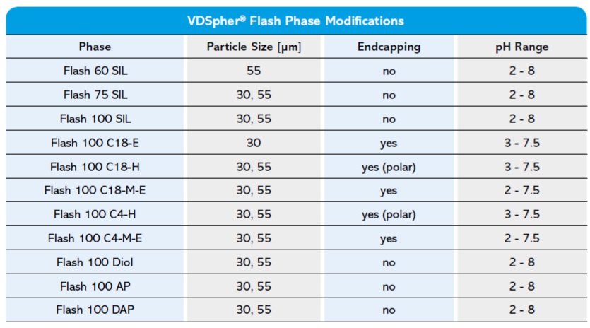 VDSpher Flash 液相色譜純化分離柱